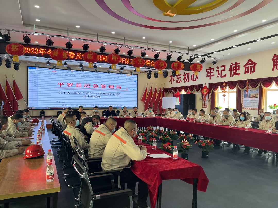 會議傳達學習了平羅縣應急管理局下發的《關于認真落實“兩會”春節期間安全管理規定的通知》精神,總經理莫軍紅、副總經理張東、梁文剛、總經理助理張曉明分別對春節期間安全防范工作做出重要指示并安排部署了春節期間安全生產工作。
