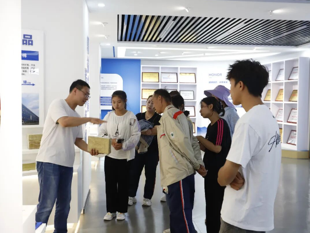 活動結束后,在綜合部副部長王磊的帶領下,受助職工及子女共同參觀了公司展廳。通過一幅幅珍貴的歷史照片、一件件實物展品和生動的多媒體演示,大家全面了解了公司的發展歷程、核心技術、產業布局及未來規劃。孩子們不時駐足提問,對公司的科技創新成果表現出濃厚興趣;職工們也紛紛表示,看到公司的蓬勃發展態勢,倍感自豪與振奮,未來將更加堅定地與公司同發展、共成長。