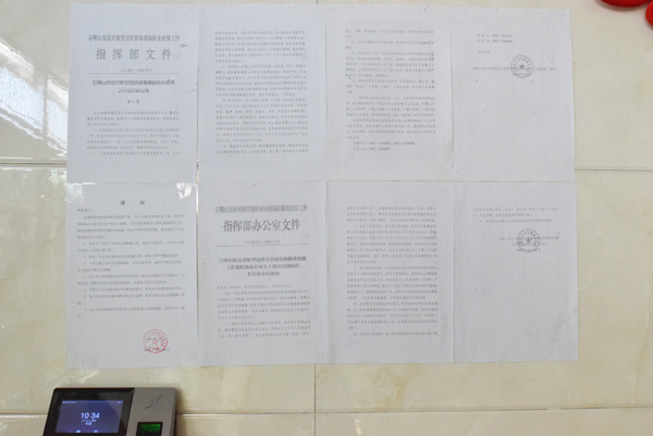 2020年1月27日上午,根據(jù)集團防疫工作領(lǐng)導(dǎo)小組要求,集團安環(huán)部采購5噸消毒液、購買5支紅外線測溫槍,對每班次上班的職工進行體溫測量登記。集團供銷部通過供應(yīng)商及網(wǎng)絡(luò)采購防護口罩,門衛(wèi)人員在大門口設(shè)置防控點,鋪設(shè)消毒草簾、對外來車輛及人員進行管控,嚴禁石嘴山市以外的外來人員及車輛進入廠區(qū)。